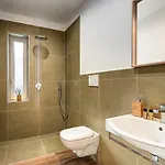 Denna lägenhet på 120 m^2 har uteplats, balkong och soffa i varje rum. Gästerna kan använda bidé, separat toalett och dusch.